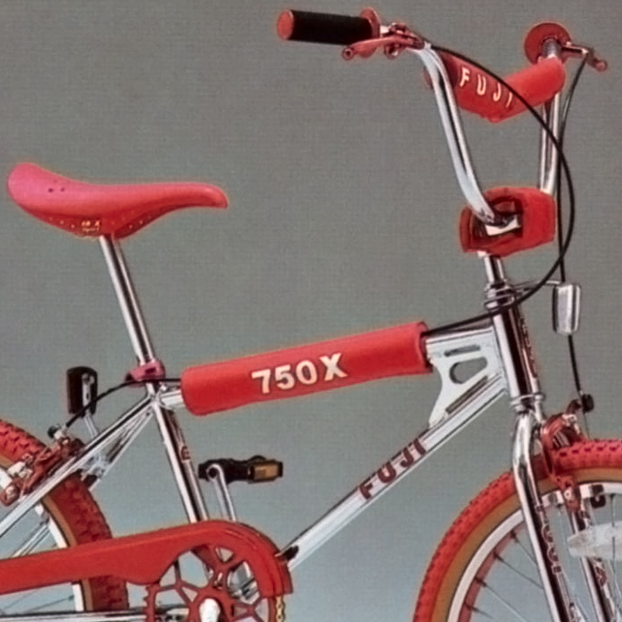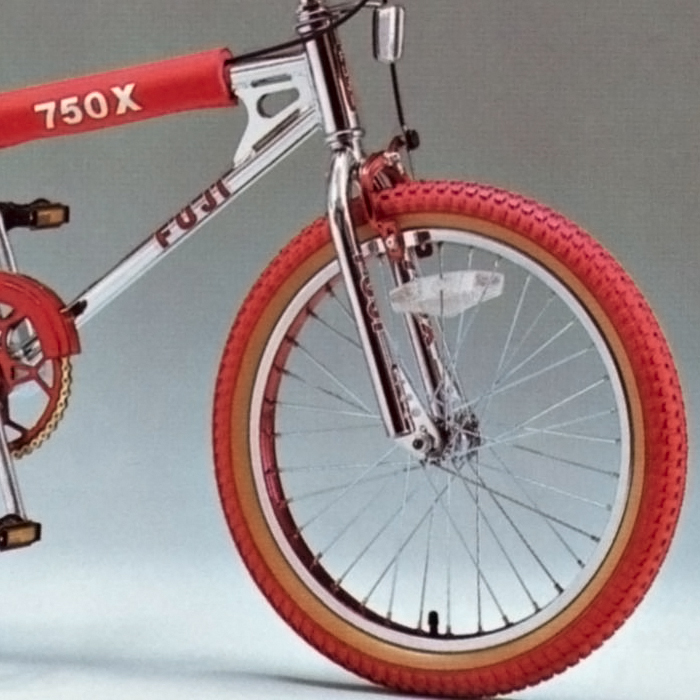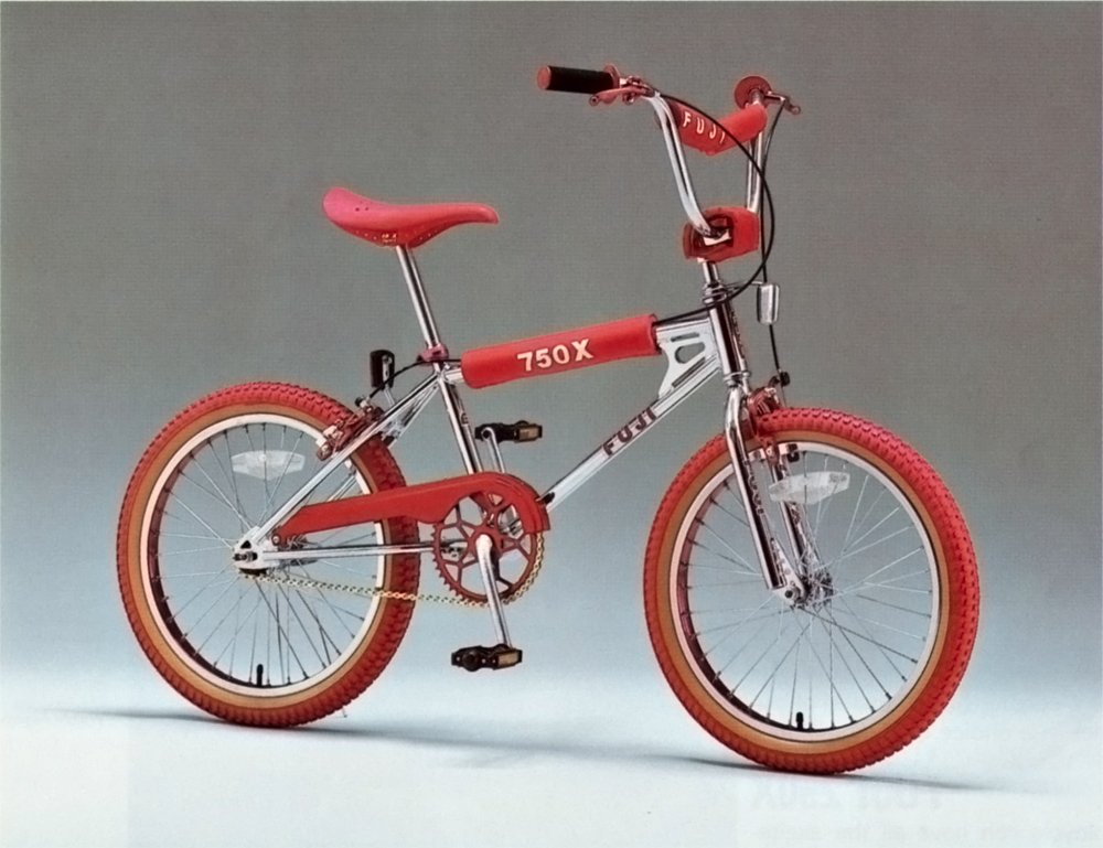 1983 marked big changes for Fuji BMX bikes.The Fuji 750x was now their top model, but a far cry from the Feather and Feather Professional. This was the beginning of the end for Fuji BMX bikes. The 750x was available from 1983 to 1985, it still had some decent components, but as the high-end model it weighed quite a bit more than its Feather cousins and featured generic steel rims and hubs. The specifications state it came with knobby tires, but the catalog pictures and even several survivors that have been seen had snakebelly tires. 1983 Fuji 750X