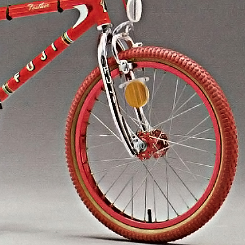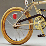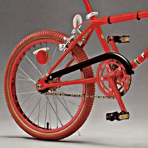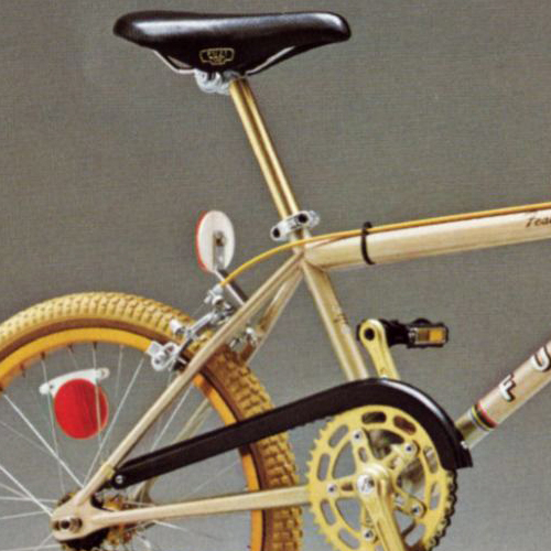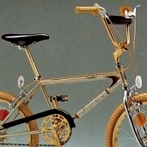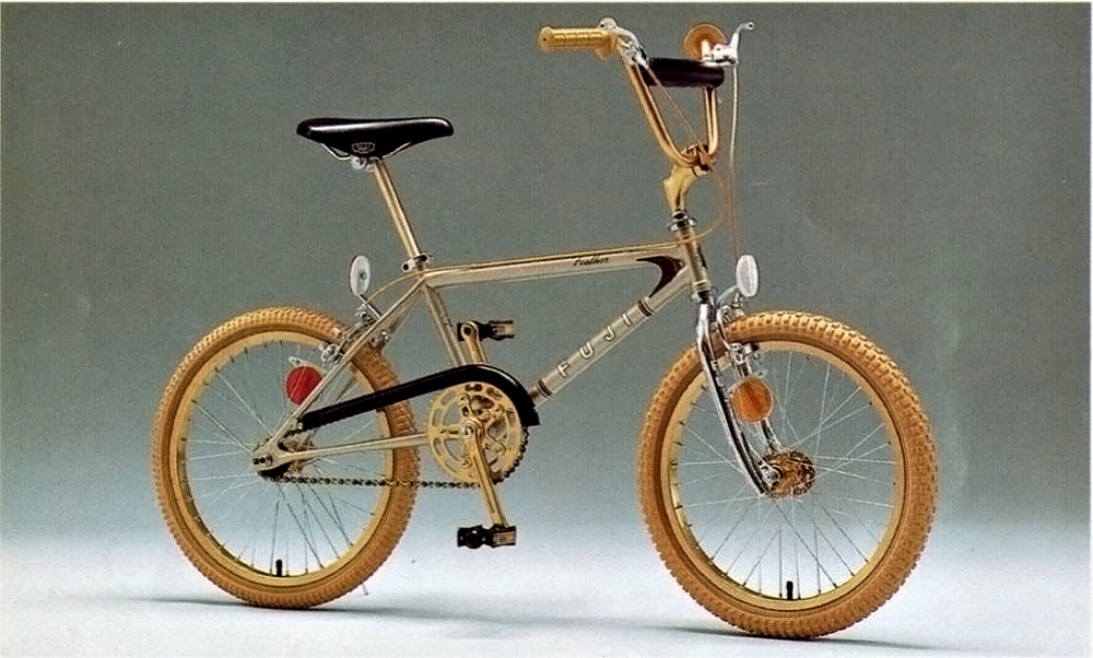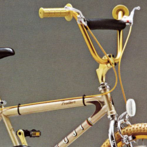 The Fuji Feather Professional BMX was first listed in the Nichibei Fuji Cycle Company, Ltd. Fuji catalog in 1980, as the "Feather Professional". It was actually available from 1979 to 1982. The catalog specifications for each year of the Feather Professional are identical. There are two subtle differences through the years. First; in 1979 there are three brake cable ties, in 1980 there are two, then in 1981 and 82 Fuji added permanent metal cable loops to the top tube. Second, in the 1979 catalog the Professional appears to have skinny 20x 1.75 tires on front and rear, where as the later years appear to have a fat/skinny combo ( 20x 2.125 front- 20x 1.75 rear).